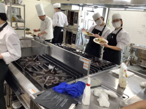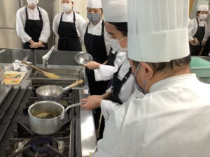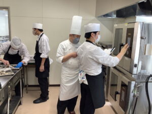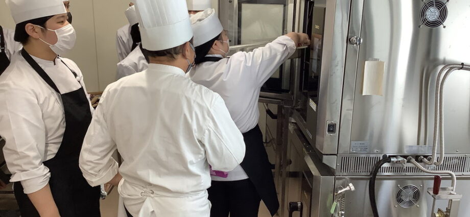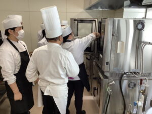 2/2(月)食育調理コース2年生の授業「課題研究」で「スチームコンベクションオーブン講習会」を行いました。