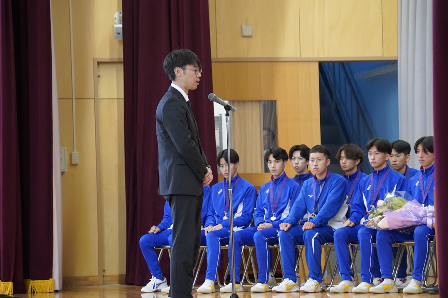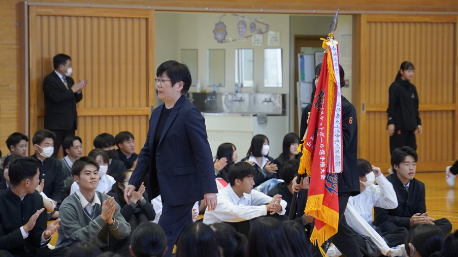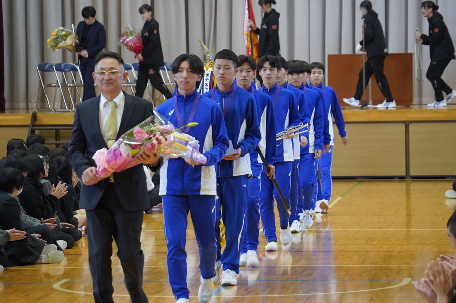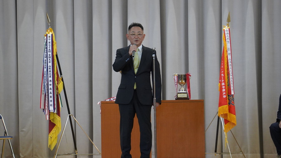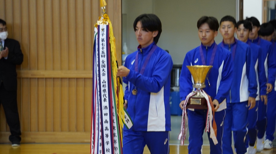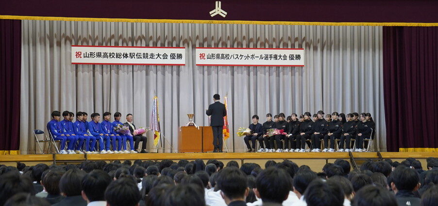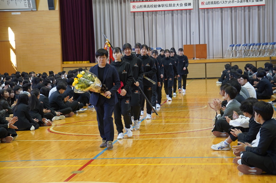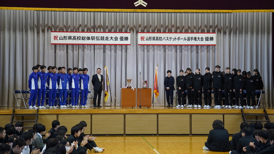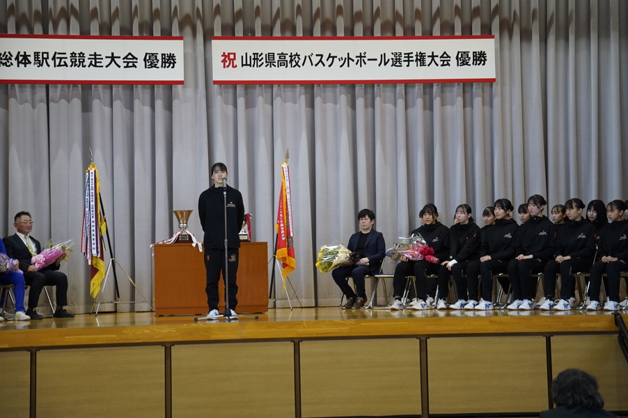 第76回山形県高等学校駅伝競走大会(男子)と第78回山形県高等学校バスケットボール選手権大会(女子)の優勝報告会を行いました。