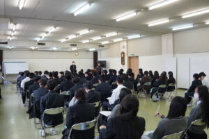 講話は「就職(調理・一般)」「公務員」「大学・短大(文系・理系)」「看護医療」「専門学校」など、進路希望別の分科会形式で行われました。