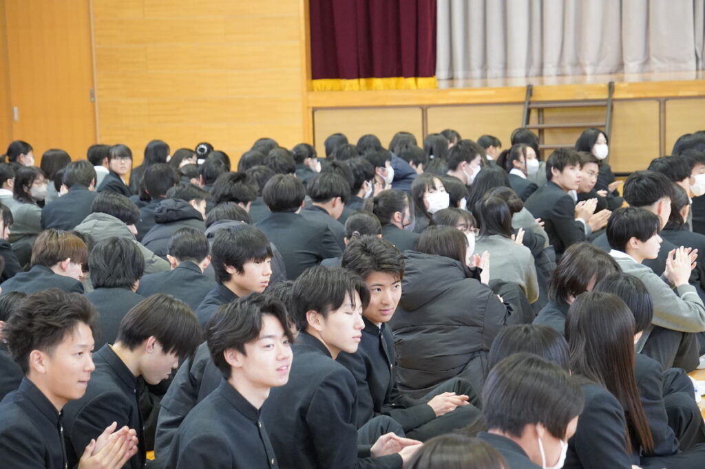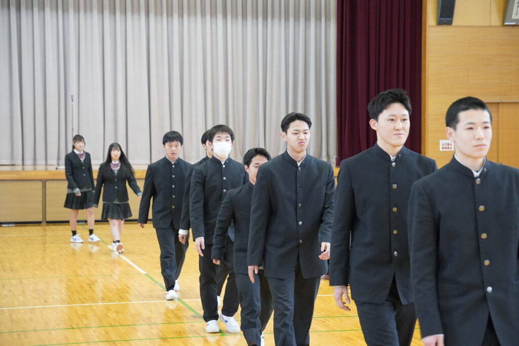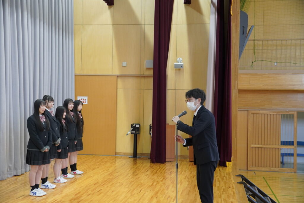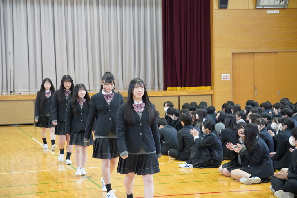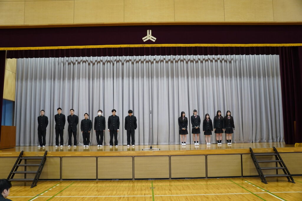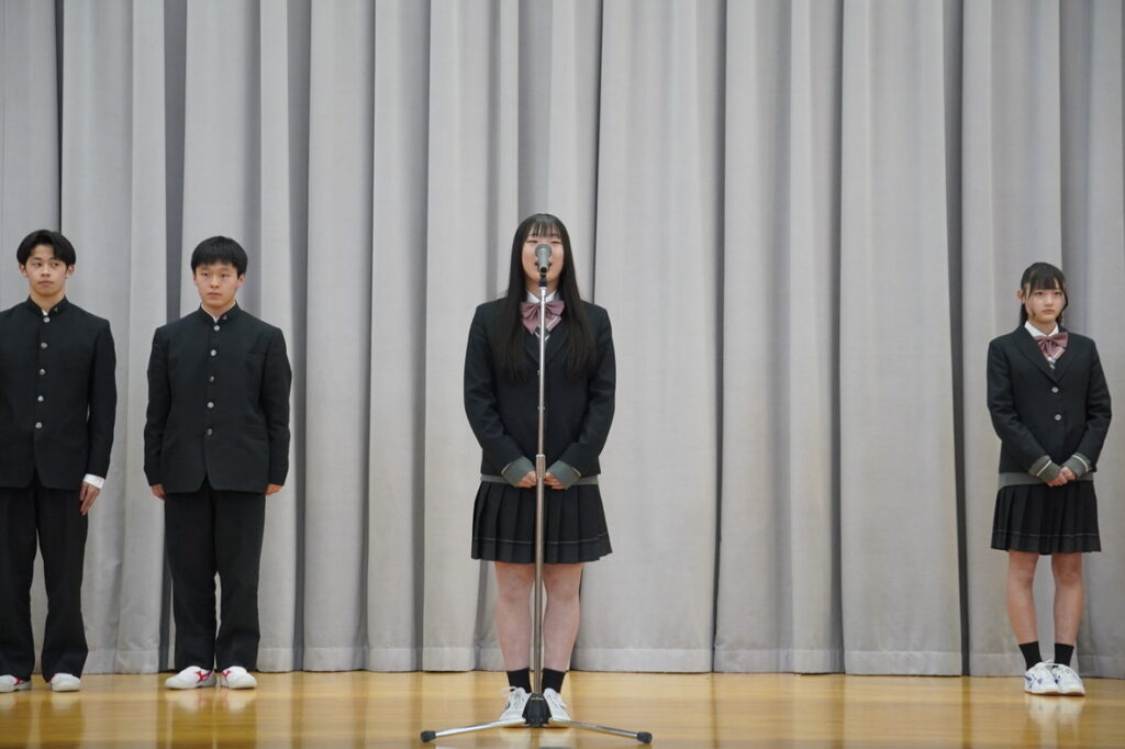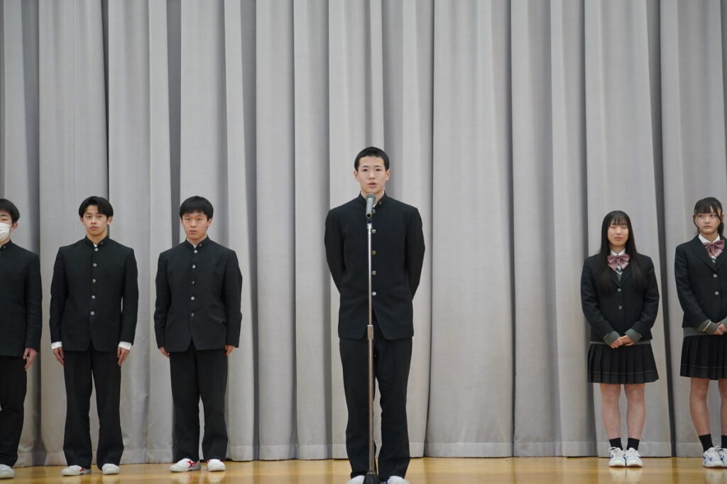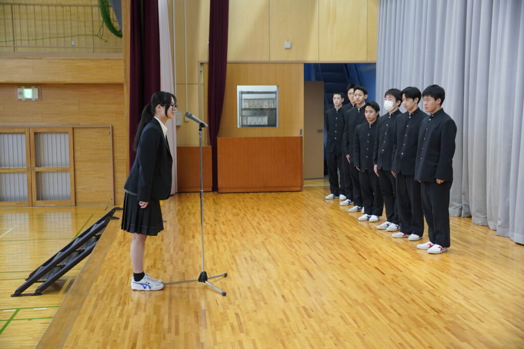 春の全国大会に向けた壮行式を実施しました。この春は、2つの部活動が全国の舞台に挑みます。