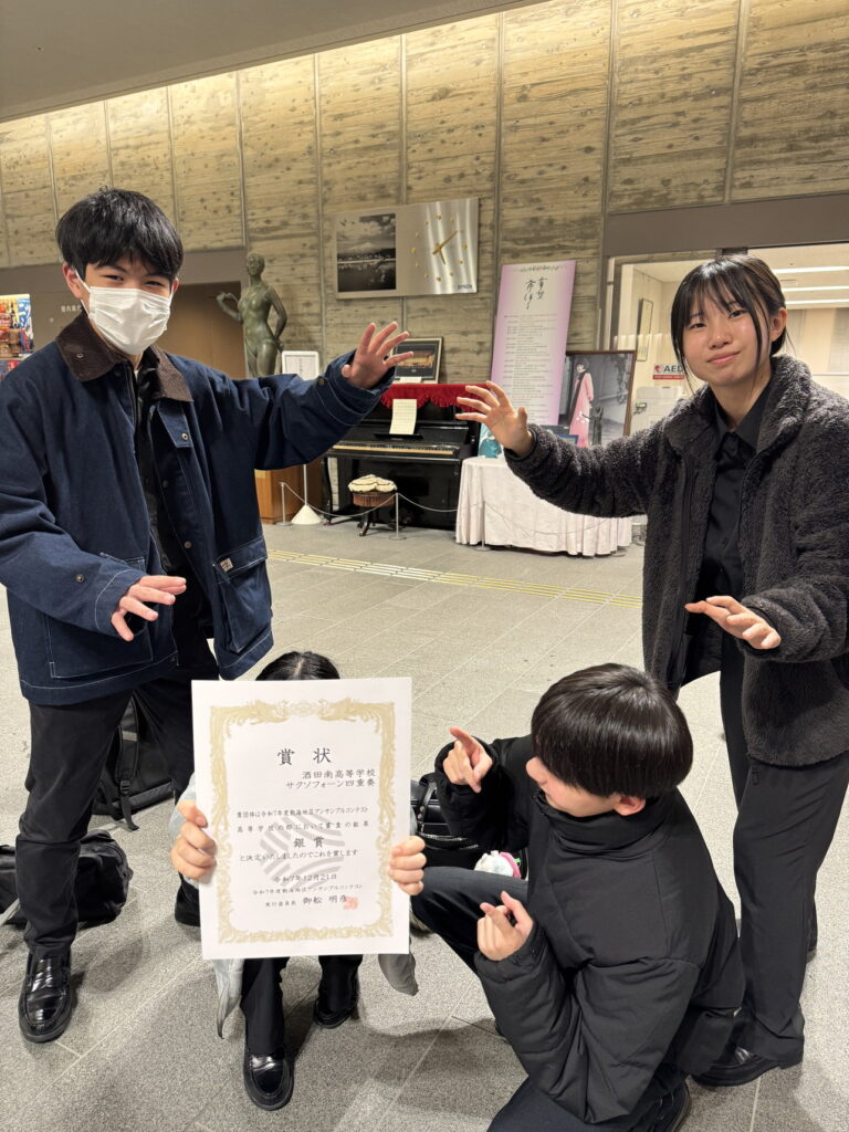 小松みずほ(2年・酒田二中)、菅原月渚(2年・酒田三中)、鈴木のどか(2年・東部中)、齋藤心(2年・酒田三中)、白倉鈴(1年・酒田一中)