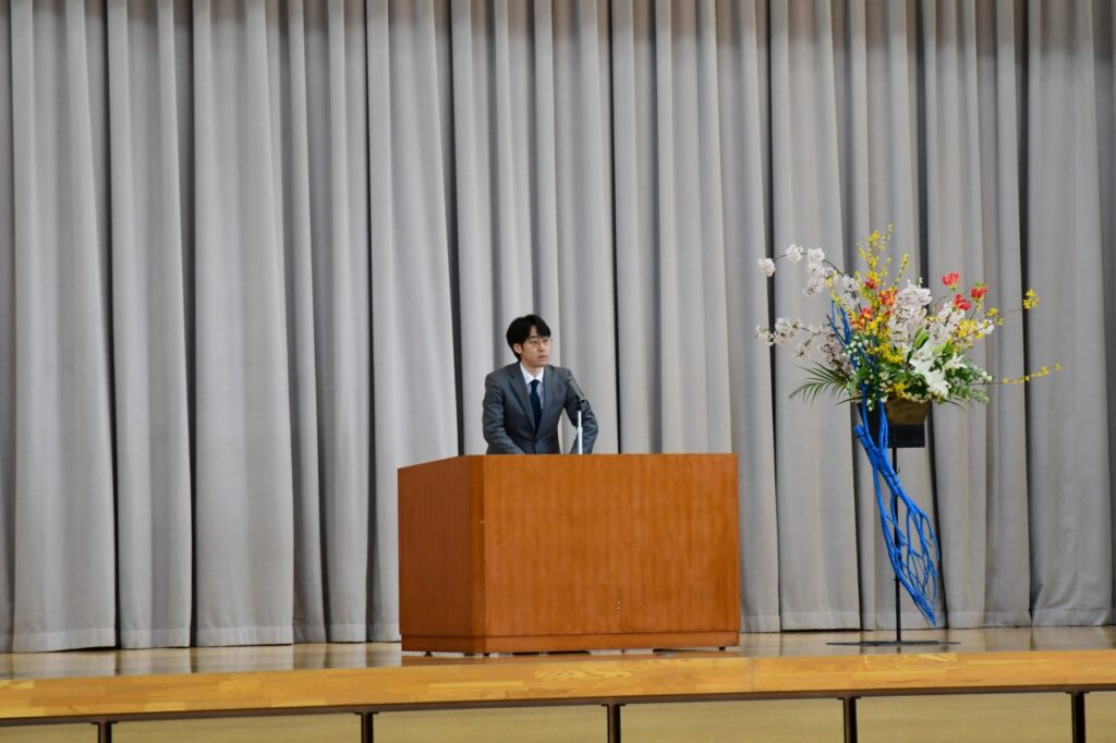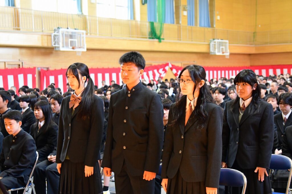 午前中は在校生(2・3年生)が登校し、新任式・始業式が行われ新たに4名の先生方をお迎えしました(全教職員の紹介は後日配布されます)。始業式では校長先生より年度が始まるに当たっての訓示が行われ、その後在校生によって入学式の準備が行われました。