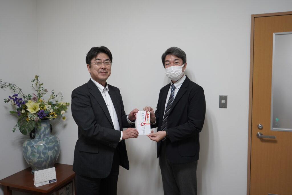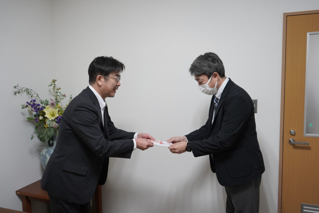 荘内日報社様より、全国大会に出場する駅伝競走部(男子)と女子バスケットボール部に、激励金が贈呈されました。