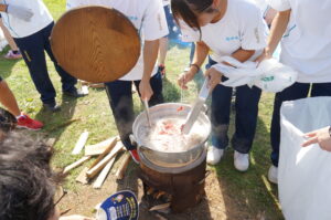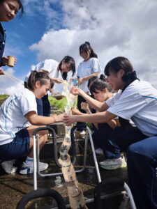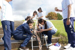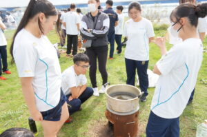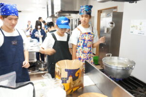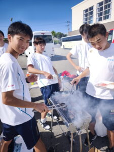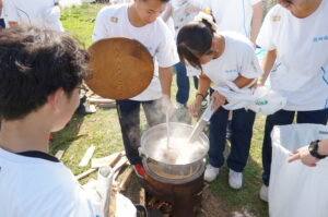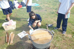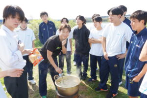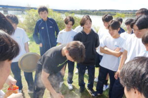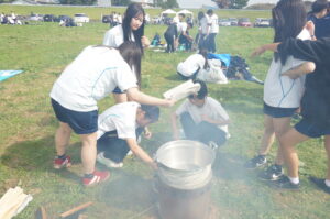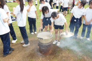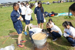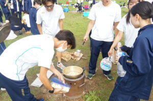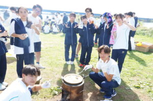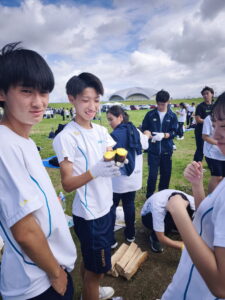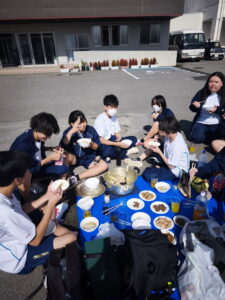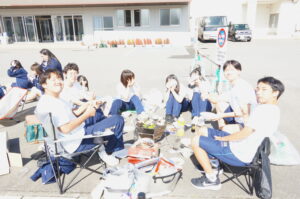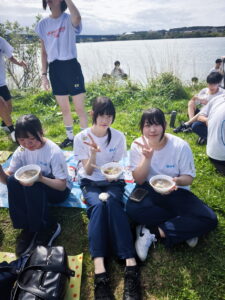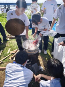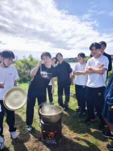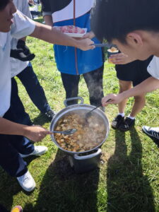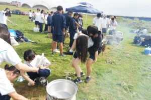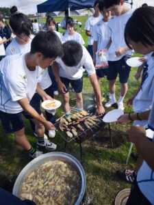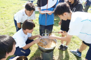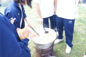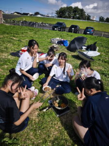 10月8日(水) 芋煮会を行いました。 芋煮会は新高校になってからは初めて開催。1年生は学校、2・3年生は最上川河川公園を会場に実施しました。 開始前にひと雨降りましたが、開始後は天候に恵まれ親睦を深めながら山形の食文化である芋煮、秋の風物詩としての「芋煮会」を満喫することができました。 Copy 2025-10-09