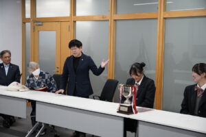 ​遊佐町役場では、町長様、議会議長様、教育長様をはじめ、元教育委員の石山様より、激励のお言葉をいただきました。