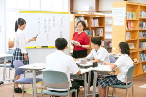 授業は、基礎学力の定着はもちろん、「思考」と「表現」にも重点をおき、調べ学習、ディスカッション、作文、発表などを取り入れ、協働しながら学びを深めています。