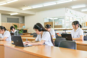 少人数編成の授業を導入し、一人ひとりの目標に合わせたきめ細かい学習指導を行います。また、教員のアドバイスを受けながら学習記録表で自分の学習をマネジメント。学習会や長期休業中の講習などを活用しながら自ら能動的に学習する事を目指します。
